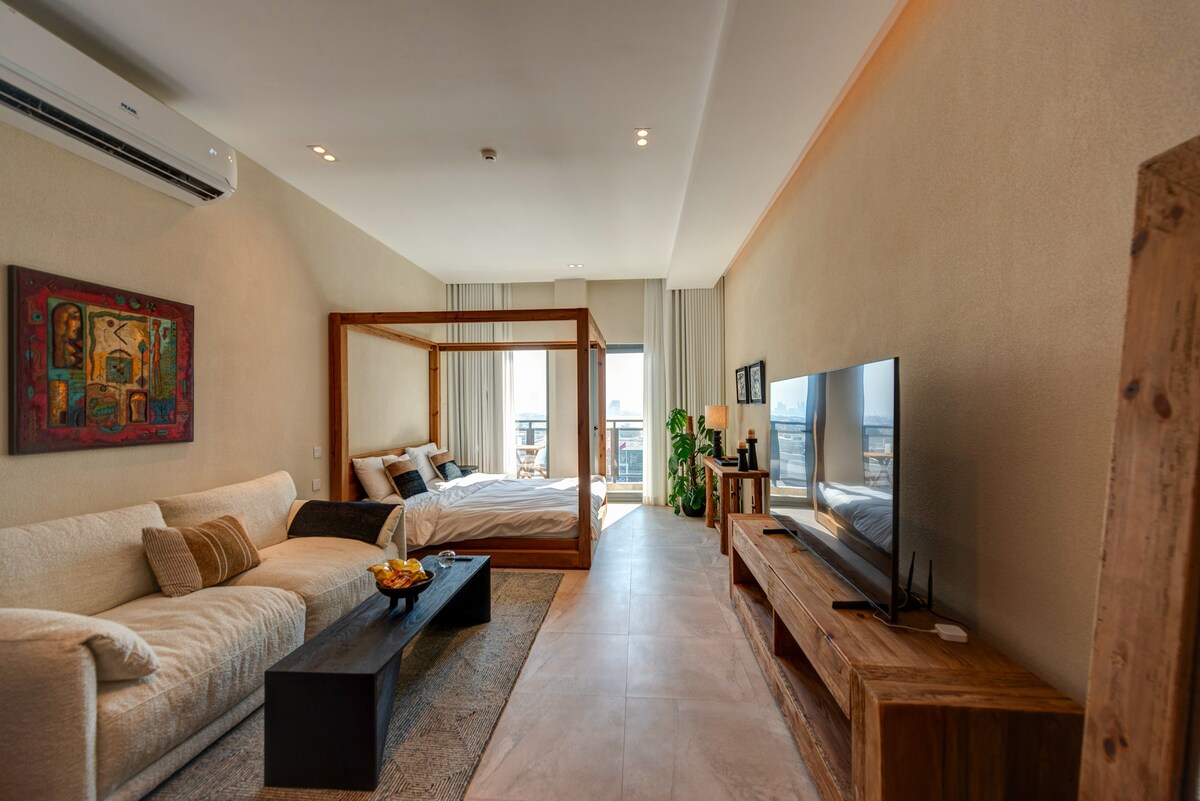 Luxury Studio | Skyline View & Cozy King Bed.