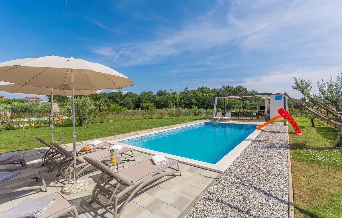 Bine ai venit la vila noastră cu piscină privată încălzită în zona rurală din Istria, ideală pentru familii sau grupuri de prieteni de până la 6 persoane. Situată într-un sat mic înconjurat de livezi de măslini și podgorii, casa se află la numai 5–10 minute de mai multe plaje. Situat strategic pentru a vizita orașe de pe litoral, cum ar fi Novigrad, Umag și Poreč, precum și sate fermecătoare din interiorul țării, cum ar fi Buje, Brtonigla și Grožnjan. Parcul acvatic Istralandia este la doar câteva minute distanță. Rezervă acum pentru o vacanță de neuitat!