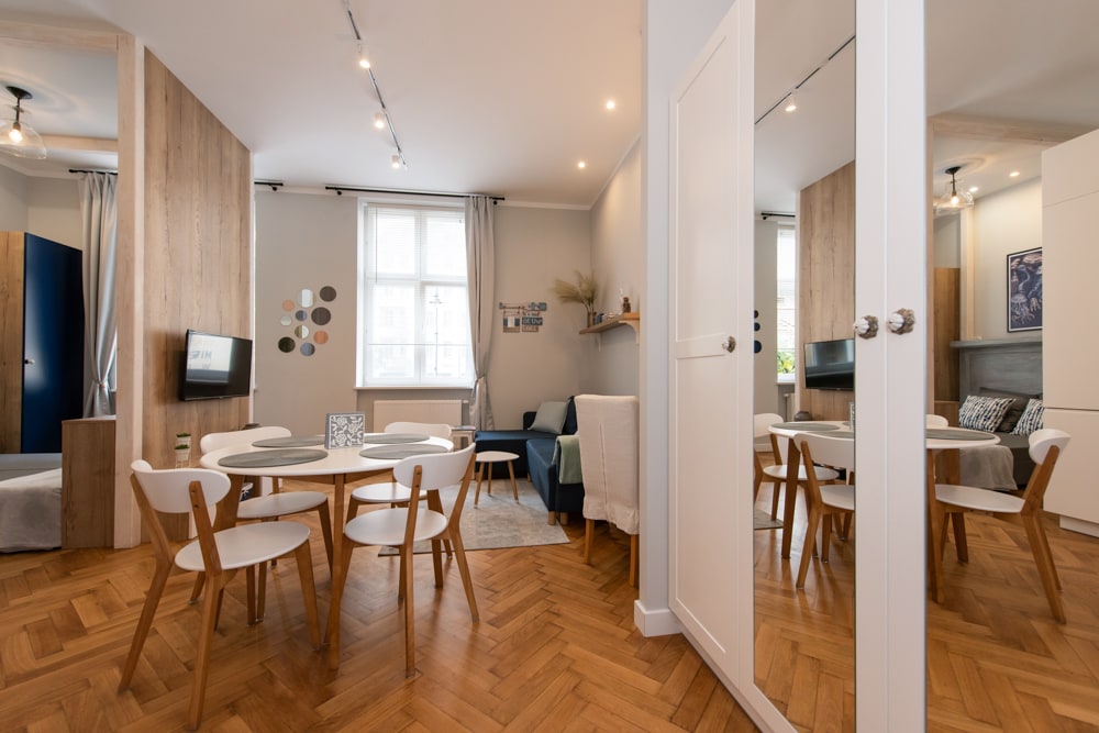 Odată un restaurant plin de viață, astăzi un apartament unic într-o casă de închiriat restaurată de la începutul secolului al XX-lea, în centrul orașului Bydgoszcz, este un loc în care farmecul clasic întâlnește confortul modern. Te invităm într-un spațiu în care detaliile arhitecturale originale, cum ar fi tavanele înalte, grinzile originale de tavan și lemnul recuperat se amestecă armonios cu mobilierul modern și dotările de cea mai bună calitate.