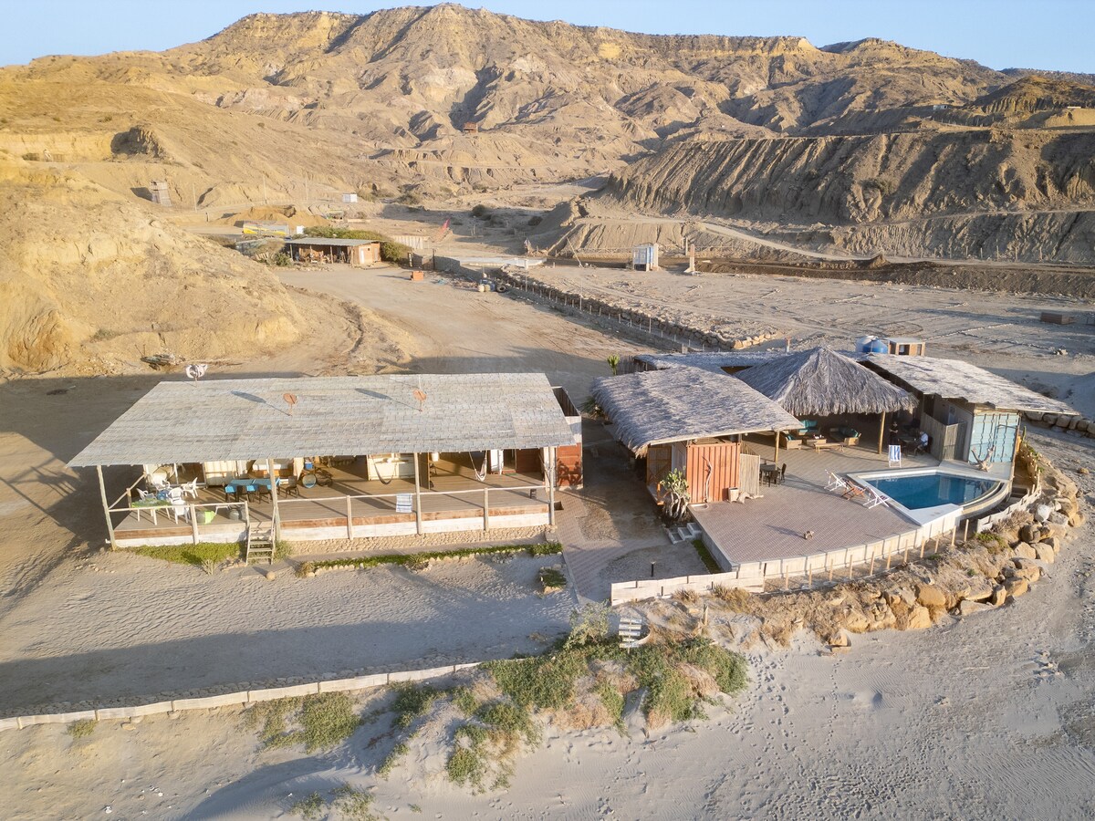 ✨ Aceasta este mai mult decât o ședere. Este o adevărată evadare. Fie că ești o familie, un cuplu care caută romantism, un grup mic de prieteni sau un nomad digital care caută inspirație la mare, aceasta este felia ta de paradis. Casă 🌴 pe plajă în Vichayito, plajă exclusivistă, la 15 minute de Máncora Vedere la 🏖️ ocean/apus Piscină privată 🏊♂️ mică | ❄️ A/C | Wi-Fi 💻 rapid Starlink Bucătărie 🍳 în aer liber + grătar | Grădină privată 🛏️ 3 paturi + canapea extensibilă | Apă caldă | Mașină de spălat | 📺 DirecTV | Energie solară 🧑🔧 Serviciu personalizat