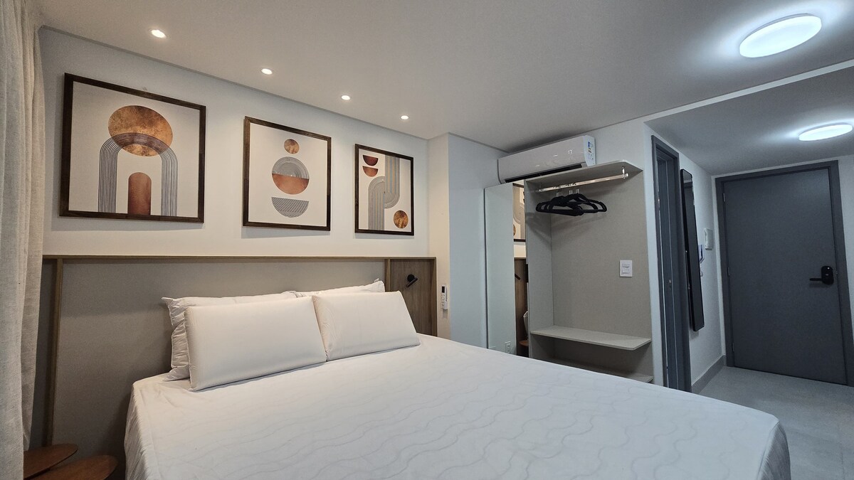 Descoperă escapada perfectă pe plajă în Cabo Branco Acest apartament luxos, de lux, de pe plaja Cabo Branco, poate găzdui până la 3 persoane, cu un pat matrimonial și un pat de o persoană auxiliar. Oferind o atmosferă modernă, confortabilă și confortabilă, toate dotările pentru un sejur unic. Situat într-o zonă privilegiată, cu acces facil la servicii și facilități. Fiecare detaliu a fost conceput pentru a oferi o experiență de neegalat. Rezervă acum și trăiește tot ce e mai bun în João Pessoa!