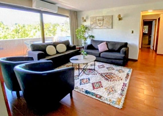 Apartament spațios și fin (etajul 2), în condominiul „Parque Pinares” (www.parquepinares.cl), situat pe malul lacului Villarrica, cu acces privat la lac și înconjurat de copaci nativi și foarte aproape de Pucon (mai puțin de 1 Km). Cu living mare și terasă cu vedere la lac, bărci și munți. Dormitor cu vedere la lac, dressing, cutie de siguranță și baie mare. Poate ajunge la o mare varietate de restaurante, cazinouri și cluburi de noapte, plimbări sau în Uber.