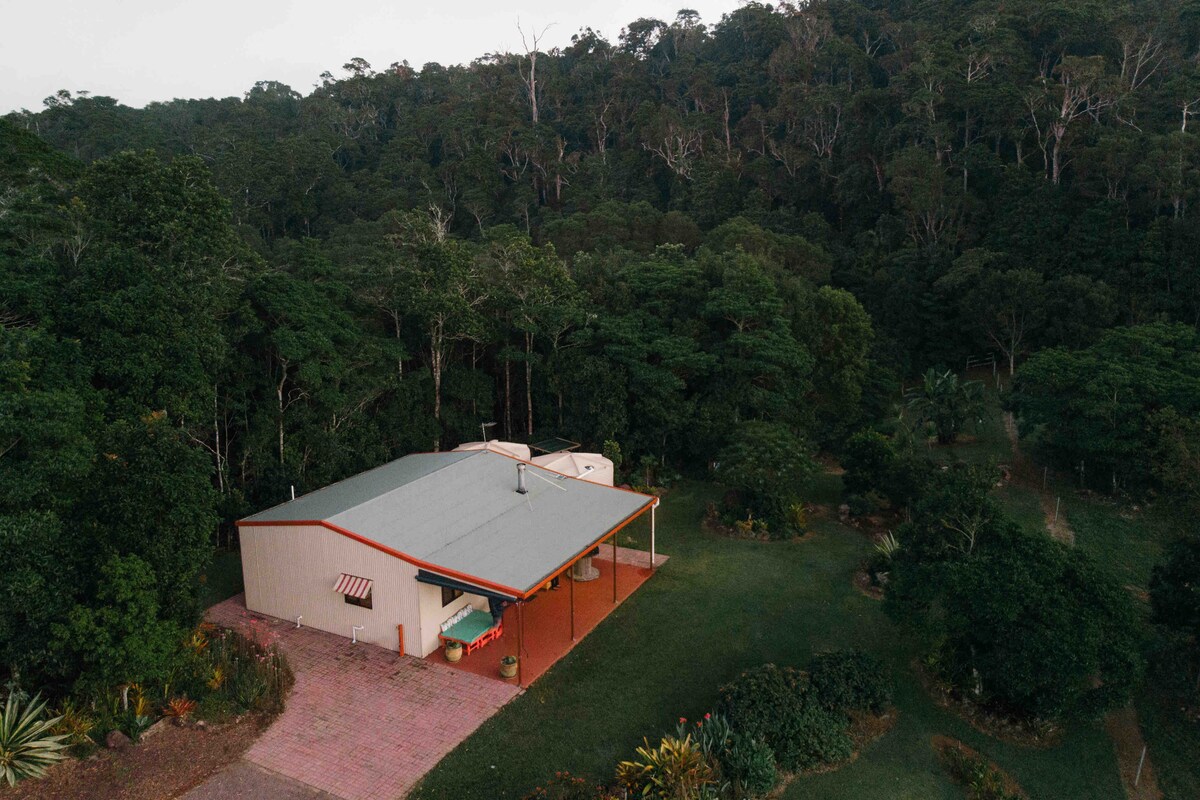 Amplasată într-o pădure tropicală luxuriantă, casa noastră spațioasă construită manual este un refugiu liniștit, conceput cu dragoste. Situat în afara drumului principal, dar aproape de atracții, suntem la 40 de minute de Cairns CBD și la 5 minute de satul Kuranda. Explorează Marea Barieră de Corali, lacurile și cascadele, apoi relaxează-te pe terasa noastră spațioasă. Bucură-te de pacea și liniștea pe care le oferă casa noastră, indiferent dacă savurezi cafeaua de dimineață sau vinul de seară. Experimentează farmecul unic și frumusețea naturală a sanctuarului nostru din pădurea tropicală.