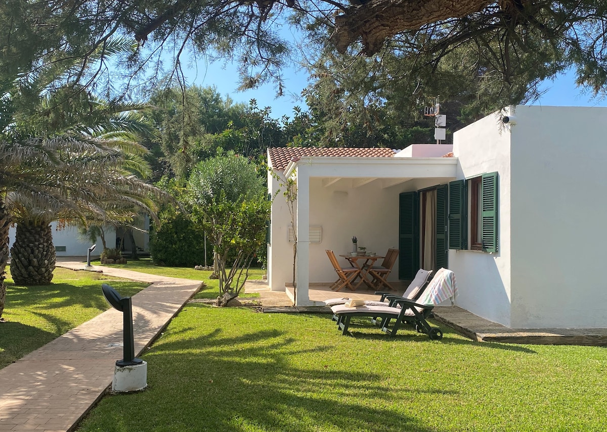 Apartament la parter, 45 m2, terasă, 2 camere duble, situat într-o grădină și zonă rezidențială cu piscină, la 300 m de o zonă de agrement și supermarketuri. WI-FI. Situat într-un complex privat cu grădini mari și o piscină comunitară cu zonă pentru copii. Apartamentul este situat la 300 m de mare, lângă farul din Cap d 'artrux, la 1 km de plaja Cala' n Bosch, la 1,5 km de plaja Son Xoriguer, la 8 km de Ciutadella și în apropiere de golfurile nealterate de pe coasta de sud a insulei Menorca.