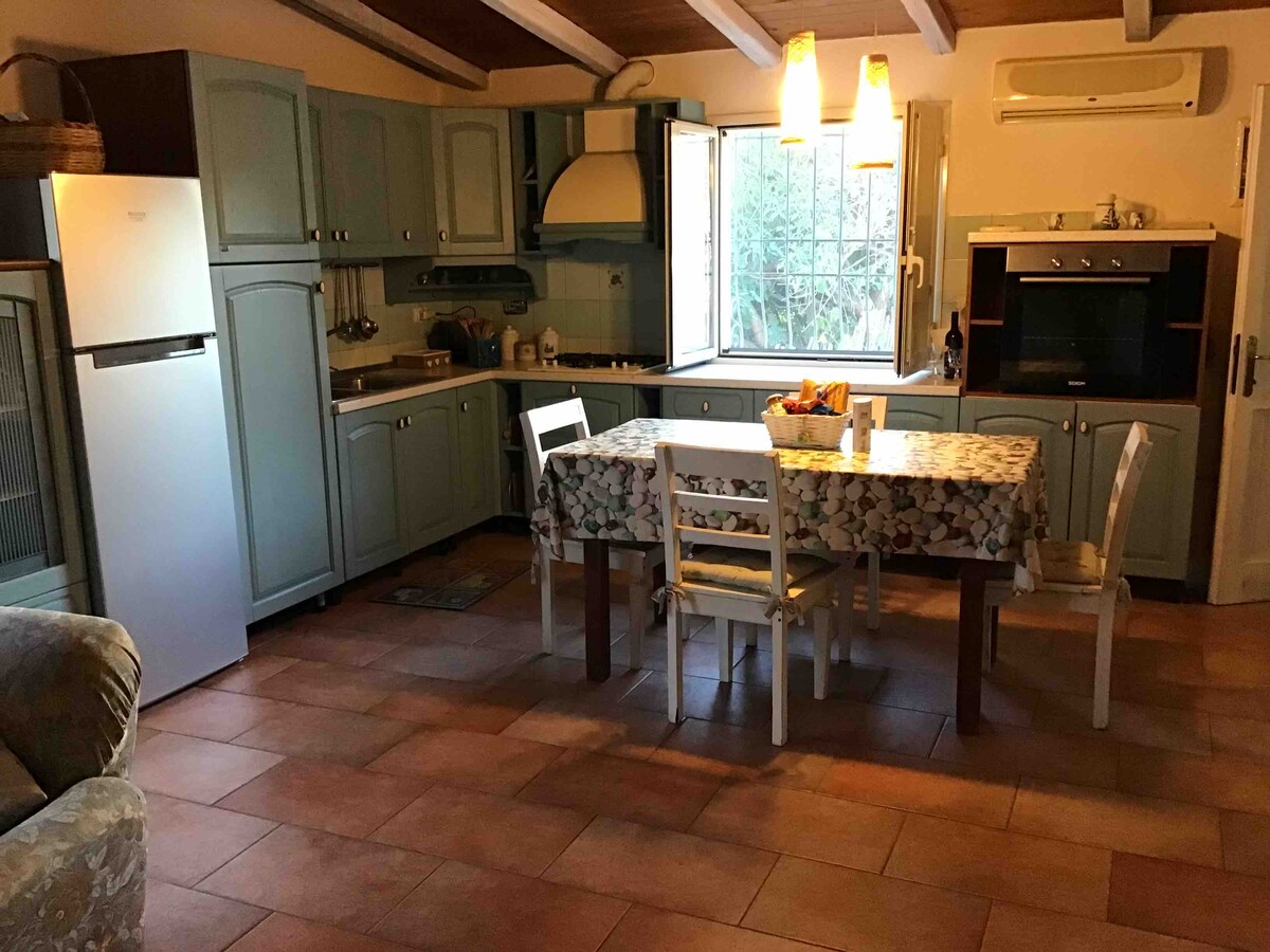 Deliziosa villa finemente arredata con incantevole panorama sullo splendido giardino.Riservata,indipendente e comoda è ideale per la famiglia che vuole ogni confort. Il giardino che circonda la casa è completamente recintato con ampi spazi per potersi rilassare con amaca e lettini prendi sole. L' arredamento è curato in ogni dettaglio con mattoni,marmo di Orosei e tronchi di ginepro. E' composta da cucina indipendente, completamente attrezzata; soggiorno con divano letto e il salone per il relax