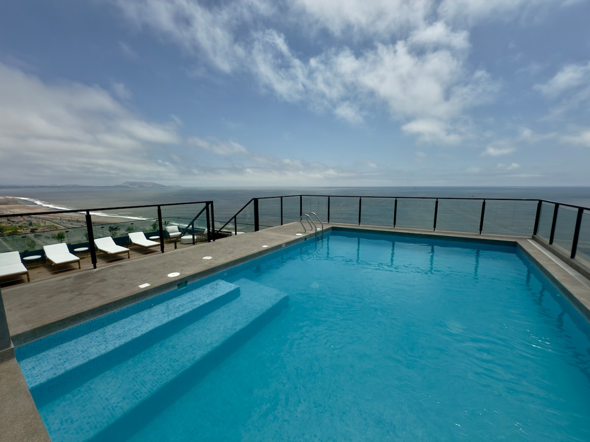 Looking for a 5 star Loft, close to the aeroport, the beach and close to the most wonderful touristic places in Lima. This is the place your looking for. This vintage - Industrial Loft offers you the best experience you can get. The most Beautiful Sea sights of Lima, the most comfortable sleep with its queen organic bed, high speed WIFI conection ideal for work or just relax. Chill with the 180° sea sight view pool, gaming room, cinema and much more.