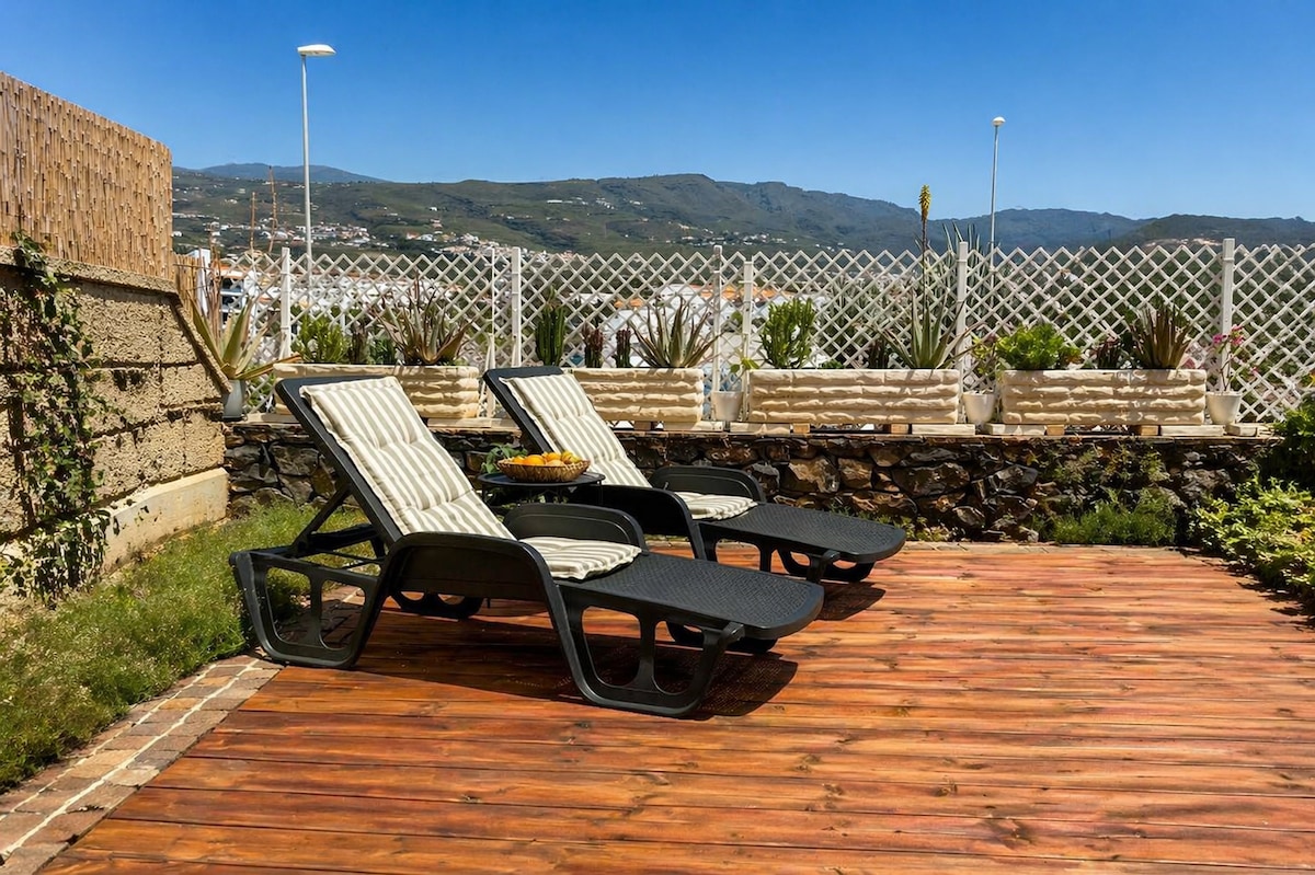 Sunny luxury villa with a heated pool and southwest-facing terrace, offering daily sunsets over La Gomera, the mountains, and Mount Teide. A designer villa by Leonardo Omar, featuring curated designer pieces and natural materials such as wood, linen, and cotton. Each bedroom includes a private bathroom and terrace. The villa also offers a dressing room with washer and dryer. A refined blend of luxury, comfort, and breathtaking views.