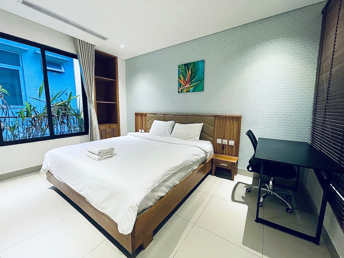 Bucură-te de căldura și farmecul acestei locuințe iubite de oaspeți: * 3 minute de mers pe jos până la plaja My Khe. * Internet privat nelimitat de mare viteză/ WIFI și internet TV (prietenos cu Netflix) * Bucătărie și mașină de spălat complet mobilate * Masaj și spa populare lângă clădire * Oferim reducere pentru șederile lunare, în funcție de anotimpuri. Tariful lunar va acoperi totul, inclusiv electricitatea, apa, internetul și curățenia, fără taxe suplimentare.