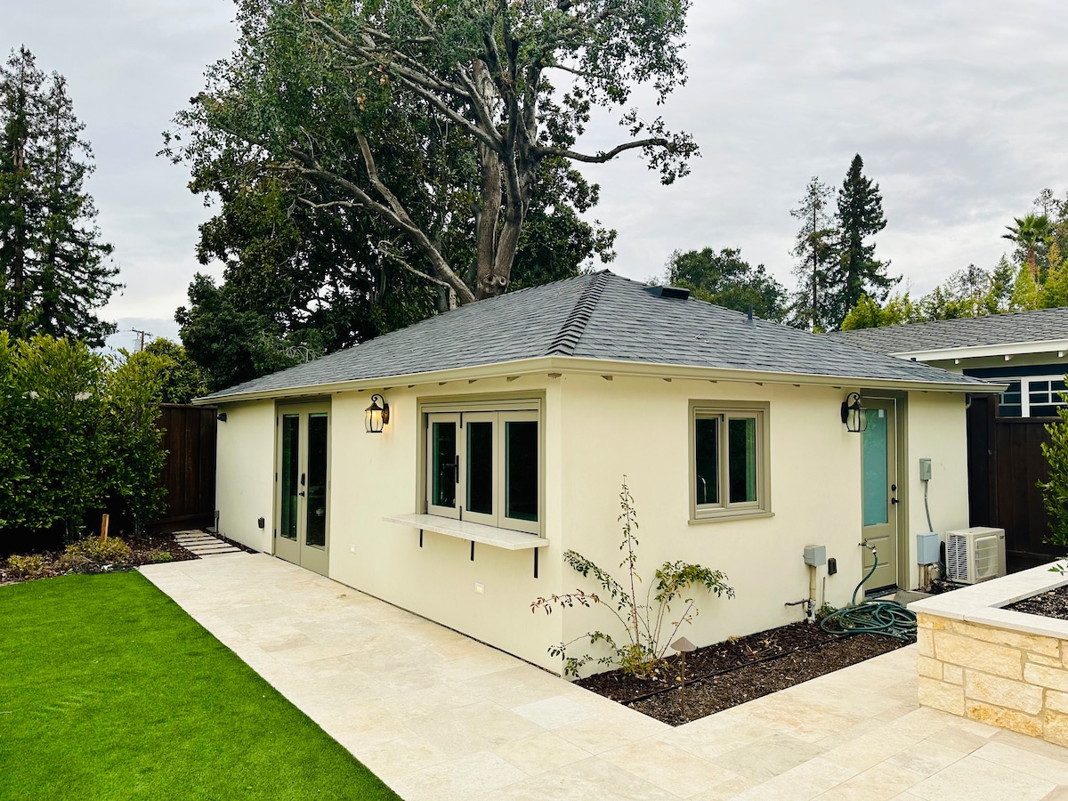 Bucură-te de o experiență elegantă în această locuință situată central. Are 1 dormitor cu pat matrimonial, 1 living, 1 baie. O bucătărie completă, mașină de spălat și uscător automat de rufe în unitate, intrare privată, terasă privată. Parcare disponibilă pe alee. Aproape de Apple, Netflix, Santana Row, dar într-o zonă rezidențială liniștită și sigură.
