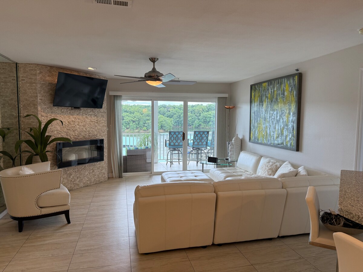 Enjoy the perfect getaway at this beautifully remodeled 3-bedroom, 2-bath condo at the highly sought-after Ledges Complex. Located at Mile Marker 20 in the Heart of Osage Beach, you are just minutes away from all the attractions you desire. This location offers an on-site boat slip, and all the amenities you will need to enjoy your stay. Spend the day lounging by the lake at the Ledges' exclusive sandy beach, grill out on the private patio, or drive minutes to Lake of the Ozarks State Park.