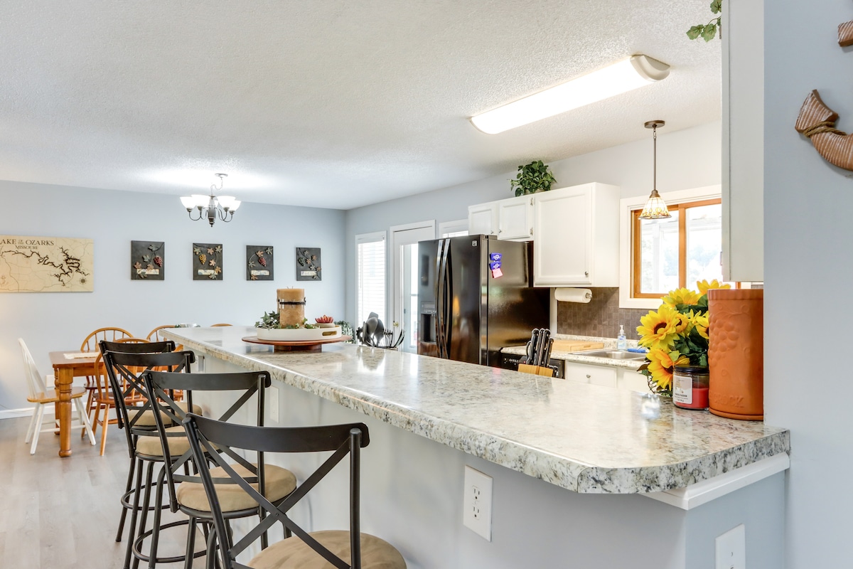 Lasă acest refugiu să ofere amestecul perfect de confort și confort optim în următoarea vacanță pe lacul Ozarks! Dispusă de 3 dormitoare, 2 băi și vedere la lac, această cabană de vacanță de închiriat este cel mai bun loc pentru o familie de entuziaști în aer liber. Petrece-ți zilele plimbându-te cu barca pe curbele întortocheate ale lacului, făcând fotografii la ruinele castelului Ha Ha Tonka State Park sau făcând un tur al Peșterii. După aventurile tale, așteaptă cu nerăbdare să vizionezi emisiunile tale preferate pe Smart TV.