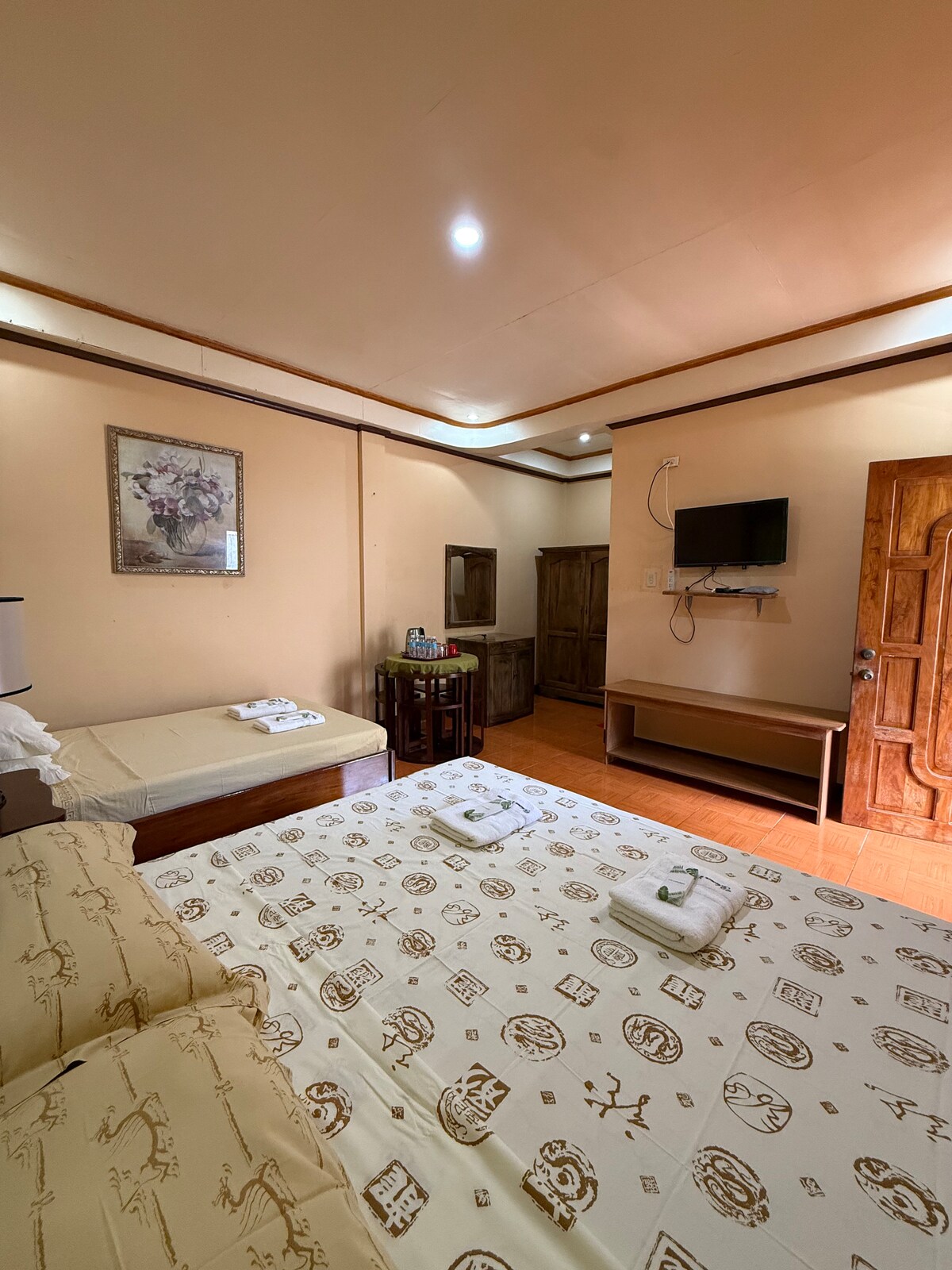Welcome to our charming room for rent, ideal for solo or duo travelers seeking a cozy retreat in the province! Accommodating 1-2 people, it offers comfort and convenience for a relaxing stay. Stay connected with WiFi and unwind with a TV after a day of exploring. Perfect for couples seeking a romantic getaway amidst scenic surroundings, this room provides a peaceful sanctuary for your provincial adventure.