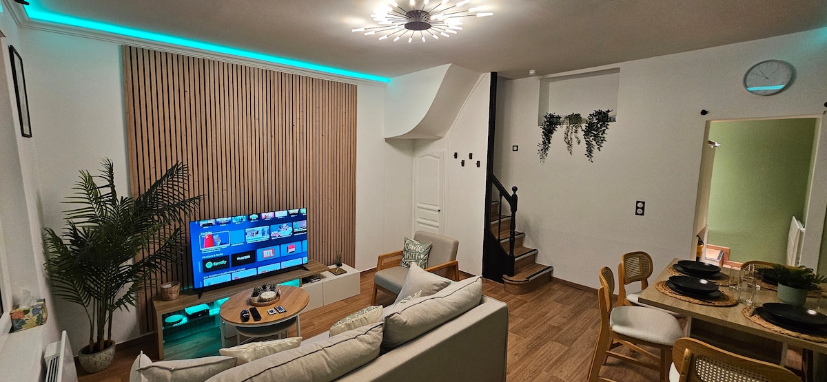 Vino și bucură-te de o ședere în frumosul oraș Amiens cu familia, prietenii sau iubitorii. CELE MAI MULTE! - Cadă Hammam Duș (camera de la etaj) cu balneoterapie, hidroterapie, terapie prin muzică, cromoterapie și hamam - Cerul înstelat (camera de la mansardă) pentru a avea „capul în stele” - Posibilitatea de a plăti o sumă suplimentară de 80 EUR pentru a avea o decorațiune de ZIUAÎNDRĂGOSTIȚILOR și o sticlă de șampanie (opțiunea trebuie plătită numai pe AIRBNB după rezervare)