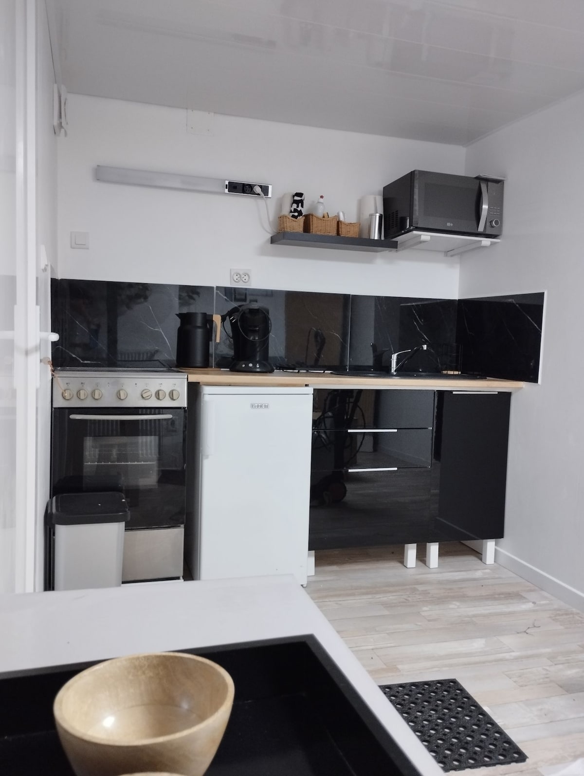 Studio de 14m2 tout équipé et complètement indépendant dans le jardin de la résidence privée comprenant : une cuisine équipée avec coin repas (plaque à induction, frigo/congélo, bouilloire, machine à café avec dosettes, micro-onde et ustensiles de cuisine), un lit deux personnes, une douche, un WC, un lavabo, une télévision et WIFI bon débit grâce à un adaptateur. Le studio possède un radiateur, les draps et les serviettes sont compris. Le stationnement est gratuit dans la rue calme et éclairée.