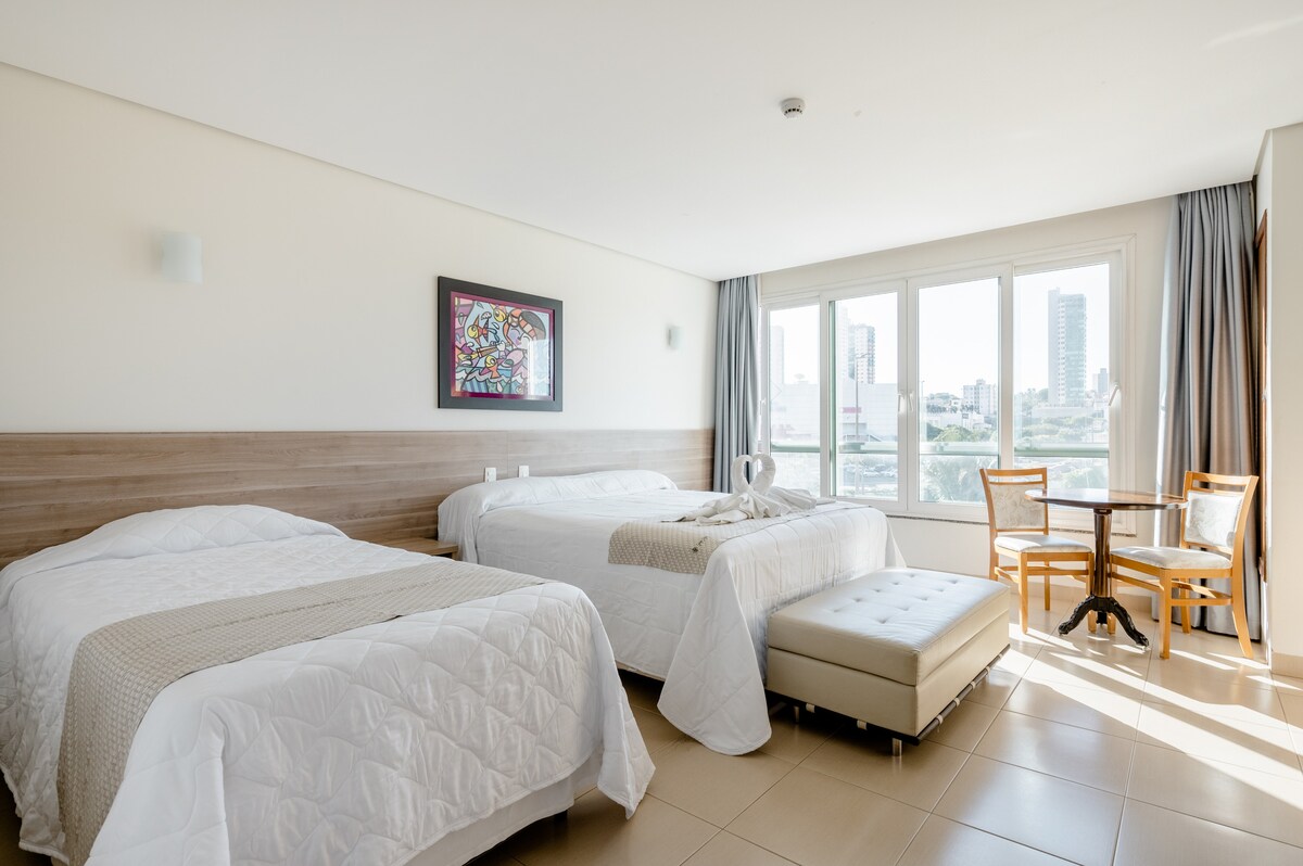 Stay in our luxurious duplex located in the heart of Campo Grande, MS. This flat is a property at the Bahamas Hotel, surrounded by the most popular restaurants, grocery stores, bars of this high-end region. This place is cozy and family-oriented. It has large windows spanning the entire width of the property, providing exceptional air-flow quality and an amazing view of the city. Breakfast is optional and charged extra. R$ 35,00. Entre em contato que preparamos uma surpresa para o seu amor 🫶 🩵