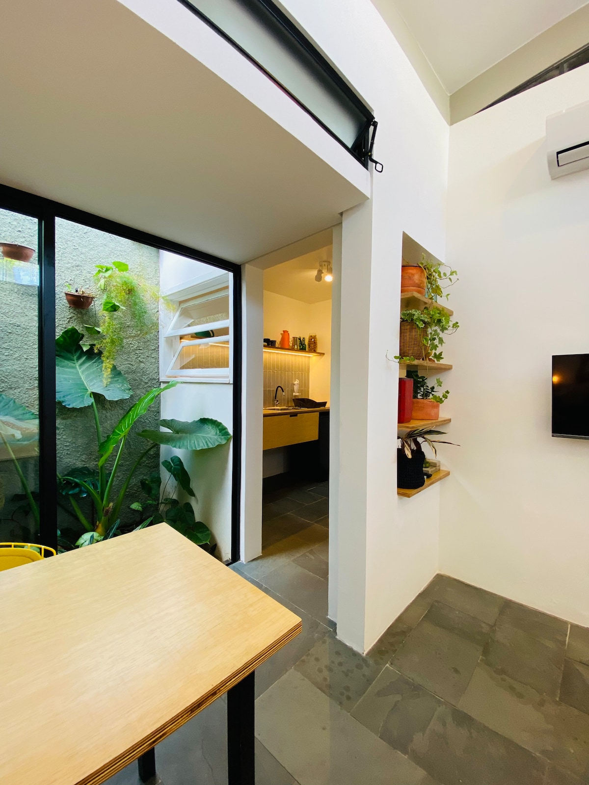 Situat în Trindade, aproape de UFSC și de centrul orașului Florianópolis, are acces facil la plaje (în medie 20 km). Cu o atmosferă intimă și liniștită, spațiul a fost conceput pentru confortul și intimitatea ta. Studioul este atașat unei case moderniste, dar este complet independent de accesul la scară. Strada este largă și sigură, permițând parcarea ușoară. Spațiul are tavane înalte, iluminare excelentă, un pat queen-size, o bucătărie bine echipată și exclusivă, aer condiționat Q/F, TV și Wi-Fi