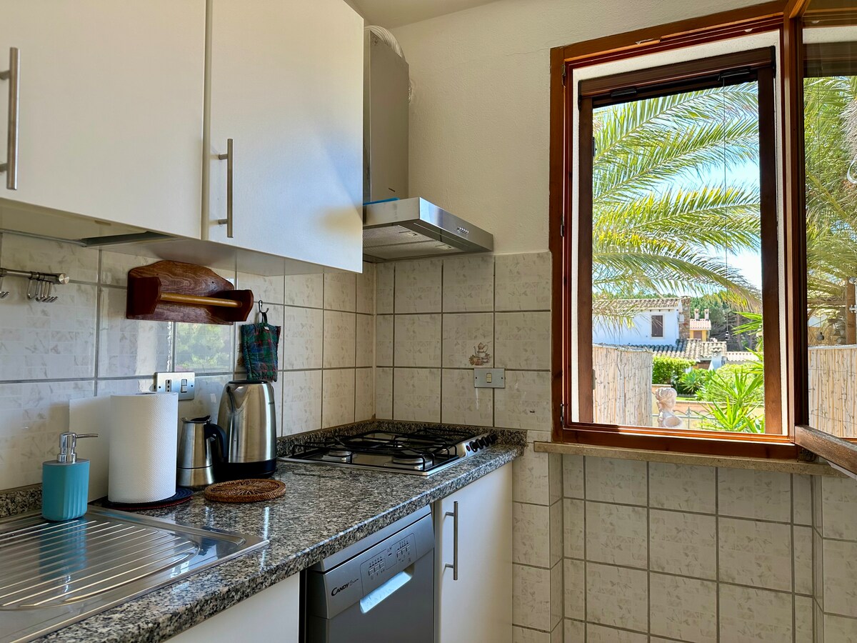 Situat direct pe malul mării, cu priveliști de neegalat din toate camerele, oferim la etajul inferior un spațiu deschis cu o canapea, masă, bucătărie, baie, o terasă mare, un dormitor cu un pat de o persoană și un pat supraetajat. La etaj există un apartament cu pat dublu, baie și o terasă/penthouse fantastic. În afara unei parcări private, pergolă cu masă, scaune și duș. 30 de metri de Porto Luna, 300 de Is Traias, 500 de Simius și 1,5 km de centrul orașului