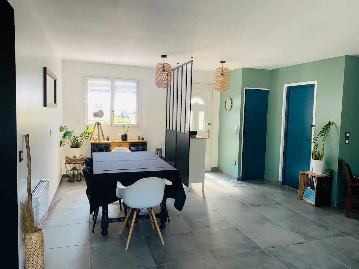 Relaxează-te în această casă de 60 m2, liniștită și elegantă, cuibărit în satul Montgé-en-Goële, în inima pădurii. Casă cu grădină privată de 100 m2 complet renovată, cu toate facilitățile (loc de parcare, mașină de spălat, WiFi, TV, chicinetă echipată, cuptor cu microunde, grătar, frigider etc.) la 15 minute de aeroportul Charles-de-Gaulle, Asterix Park și Mer-des-sables, la 25 de minute de Disney și Stade de France, la 35 de minute de Paris. Acces la piscină vara.