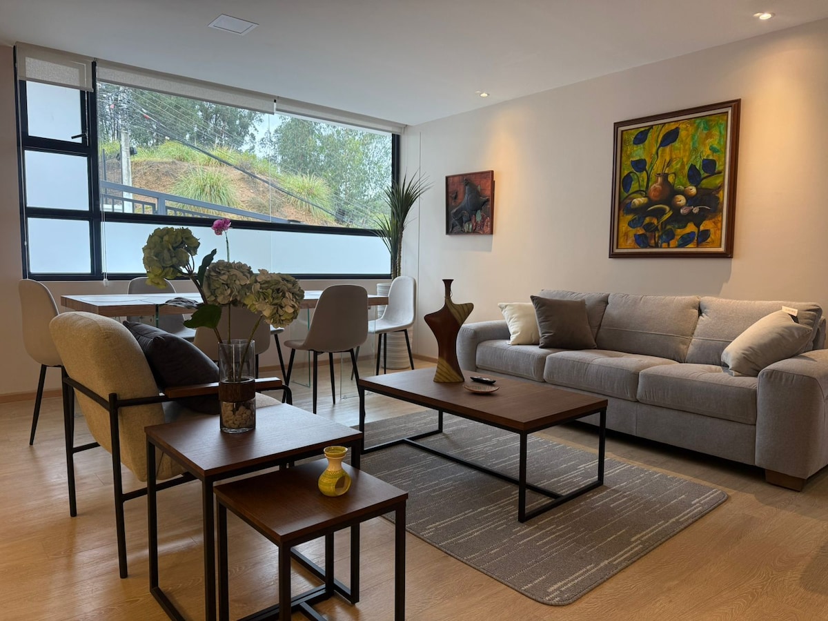 Bine ai venit într-un spațiu plin de pace și căldură, ideal pentru a te bucura ca familie sau cu prietenii. Apartamentul nostru este potrivit pentru animale de companie🐾, înconjurat de priveliști frumoase ale Cerro Cojitambo și Cerro Abuga. Aici vei găsi confort, energie bună și gazde care te vor întâmpina cu afecțiune. Ne aflăm în apropierea terminalului terestru, commisariatos. La câteva minute de orașul Cuenca și Biblian.