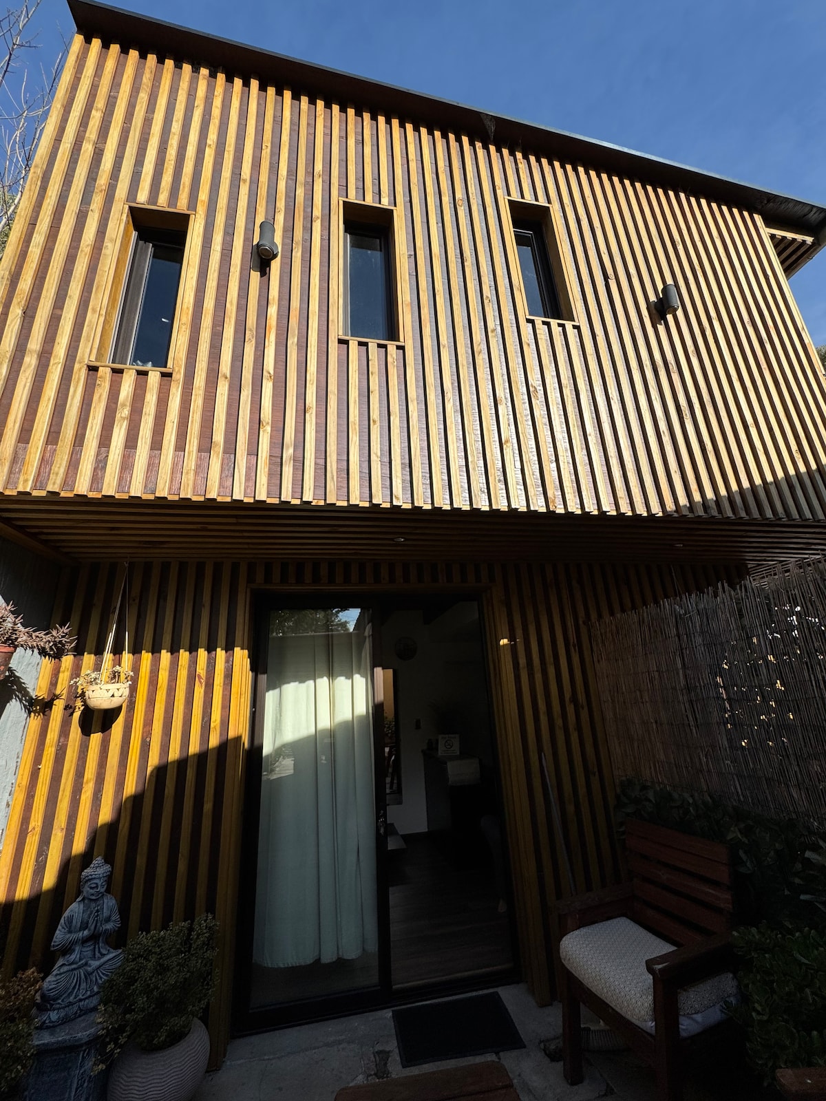 Mic și confortabil, făcut din noroi de lemn, cu un tavan verde plin de plante, este proaspăt vara și cald iarna. Ea are un dormitor cu aer condiţionat şi o bucătărie cufundat într-o grădină frumoasă în pădure cu vedere la mare. Locul este rustic și simplu, pentru cei care caută să se deconecteze și să se bucure de natură. Oferim mai mult decât o experiență de cazare, posibilitatea de a reîncărca o reînnoire. Face parte din Espacio Alaluz, un loc care integrează activități terapeutice și artistice.