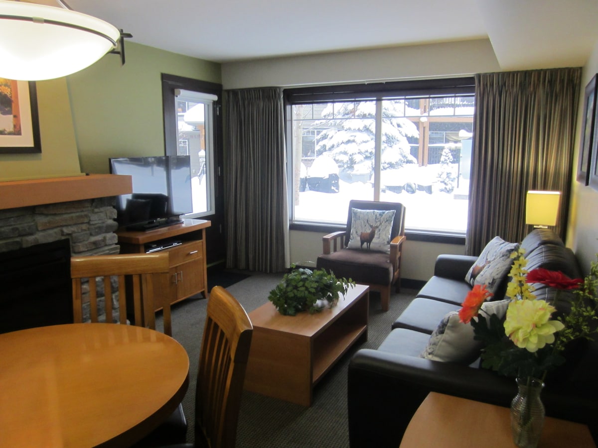 Situat în inima orașului Canmore, în luxosul Rundle Cliffs Lodge, bun venit în apartamentul nostru spațios cu 2 dormitoare și 2 băi complete, care doarme confortabil 6. Este o plimbare plăcută de 10 minute de-a lungul unui pârâu montan până la strada principală vibrantă din Canmore, alimente, magazine, restaurante și pub-uri. Bridgette Bar și Red Gables, un mic magazin alimentar specializat în articole locale, sunt deschise și situate pe Spring Creek Drive.