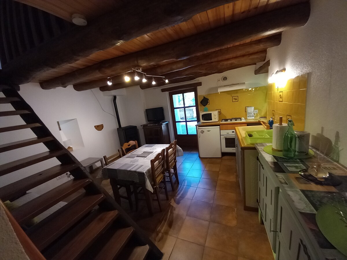 În inima orașului Cevennes, într-un cătun liniștit, al cărui fost fumător de castane a fost renovat ca o cabană, este ideal pentru relaxare și petrecerea unui timp bun în toată liniștea. Această cabană este compusă la parterul unui living cu bucătărie utilată și canapea extensibilă, 1 toaletă . La etaj, 2 dormitoare, inclusiv 1 cu saună. Poți descoperi în mijlocul naturii, râuri mici, lângă cabană. Apă non-otabilă Jaccuzi în aer liber /!\ Nu există rețea, dar Wi-Fi disponibil