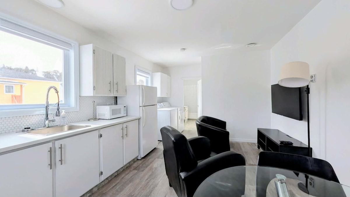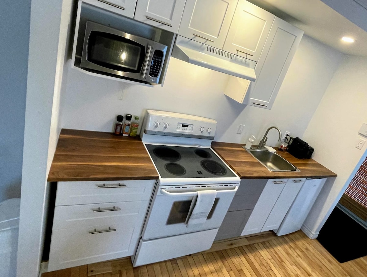 Studio fermecător renovat recent, situat în inima orașului Chicoutimi, într-o casă de patrimoniu istoric. Clădirea se află chiar la marginea râului Saguenay, la doar 2 minute de mers pe jos de un magazin alimentar și la câțiva pași de o pistă de biciclete care te duce în centrul orașului în mai puțin de 5 minute de mers pe jos. Recent renovat, păstrând în același timp farmecul și caracterul său original. Te rog să reții că nu există vedere la râul Saguenay din apartament sau balcon.