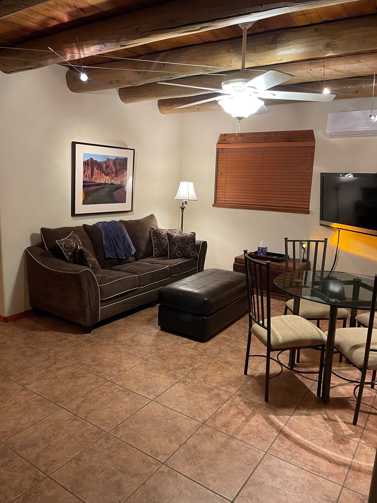 Apartamentul Santa Maria de la Zona Rosa cu șemineu - Mergi pe jos până la Plaza și muzeele de artă Situată în Complexul Zona Rosa, unitatea elegantă 1BR/1BA Santa Maria se află la o scurtă plimbare de piața istorică, Muzeul Georgia O’Keefe și tot centrul orașului Santa Fe. Mergi la Railyard Arts District pentru a căuta buticuri și a gusta delicii culinare locale. Seara, întoarce-te acasă la ambianța caldă a propriului șemineu. ***Te rugăm să reții că, dacă călătorești cu un grup mai mare, ia în considerare închirierea suplimentară adiacentă sau a uneia dintre celelalte 8 unități din complex - toate unitățile sunt acum gestionate și întreținute intern, cu personal limitat la fața locului, nu printr-o companie de administrare în afara amplasamentului.*** ZONĂ DE LIVING Relaxează-te în zona de living sud-vest-chic, mobilată cu o canapea extensibilă, șemineu kiva și un smart TV cu ecran plat de 50”cu Roku. Lemnele de foc gratuite sunt sezoniere (din octombrie până în aprilie). Coșul de fum este deschis în această perioadă și apoi închis după sezon. BUCĂTĂRIE și LUAT MASA Pregătește mese gustoase în bucătăria în stil casita, dotată cu aparate din oțel inoxidabil, inclusiv un mini-frigider, plită cu două arzătoare și un cuptor cu microunde care funcționează și ca cuptor cu convecție și oale și tigăi pentru oaspeți. Când ești gata să mănânci, adună-te la masa de patru persoane. La barul din bucătărie oferă locuri suplimentare pentru două persoane. PAT și BAIE Situat la parter, acest apartament cu un singur nivel poate găzdui până la patru oaspeți între un dormitor și o canapea extensibilă matrimonială în zona de living. Dormitorul este mobilat cu un pat matrimonial de pluș și un televizor inteligent de 42”cu Roku. Baia privată este dotată cu o combinație cadă/duș. DOTĂRI SUPLIMENTARE ȘI MAI MULTE DETALII Wi-Fi gratuit, canale TV locale prin satelit, streaming Roku, lemne de foc, cafea și o spălătorie comună la fața locului cu mașină de făcut gheață (gratuit). Parcarea neatribuită este disponibilă pentru un singur vehicul în zona de parcare a proprietății (care include, de asemenea, un loc de parcare accesibil). Există două stații de încărcare pentru vehicule electrice (o stație universală și o stație Tesla) în zona de parcare. Zona Rosa este la doar 2 străzi de istoricul Plaza și la 10 minute de mers pe jos de cartierul modern Railyard. Petreceți zile pline de distracție descoperind obiective turistice și arome locale în apropierea unității voastre. Sau mergi 10 minute pentru a verifica Meow Wolf 's House of Eternal Return sau Santa Fe Opera. Pârtiile din Ski Santa Fe sunt la mai puțin de 16 mile. - Animalele de companie nu sunt permise în această locuință de vacanță. - Observații de parcare: parcare pentru un vehicul în parcarea Zona Rosa Trebuie să ai cel puțin 21 de ani pentru a închiria această proprietate.