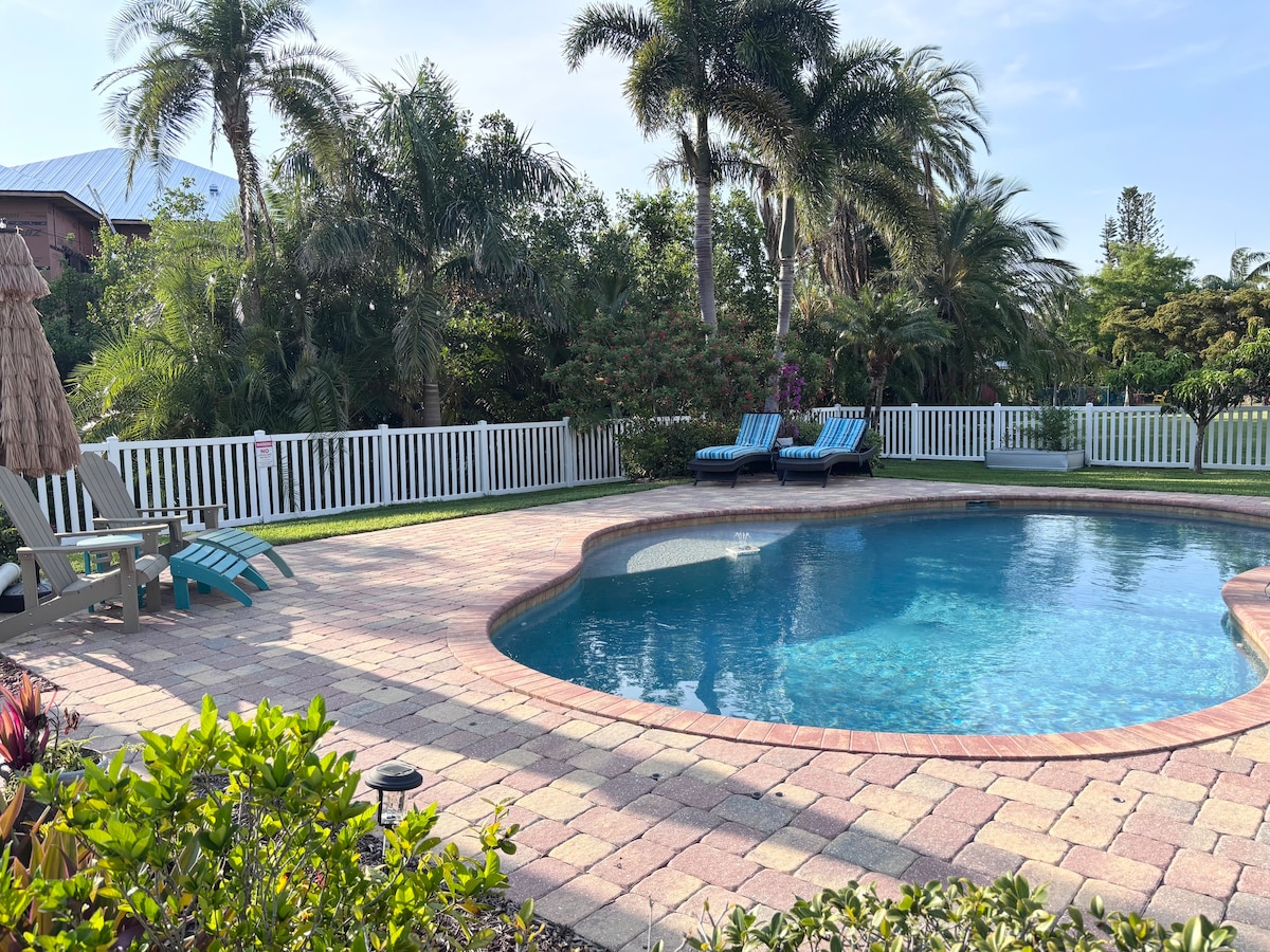 Take it easy at this unique and tranquil getaway with a massive botanical garden (photos show plants from our half acre garden), water views, and pool access! We are 20-35 minutes from the ocean and even less from the beautiful river and connecting canals. Kayak the gorgeous canals and right iut to the Caloosahatchee river! See manatees, dolphins, gators and a plethora of birds and other wildlife! Please do not tresspass on neighboring properties.