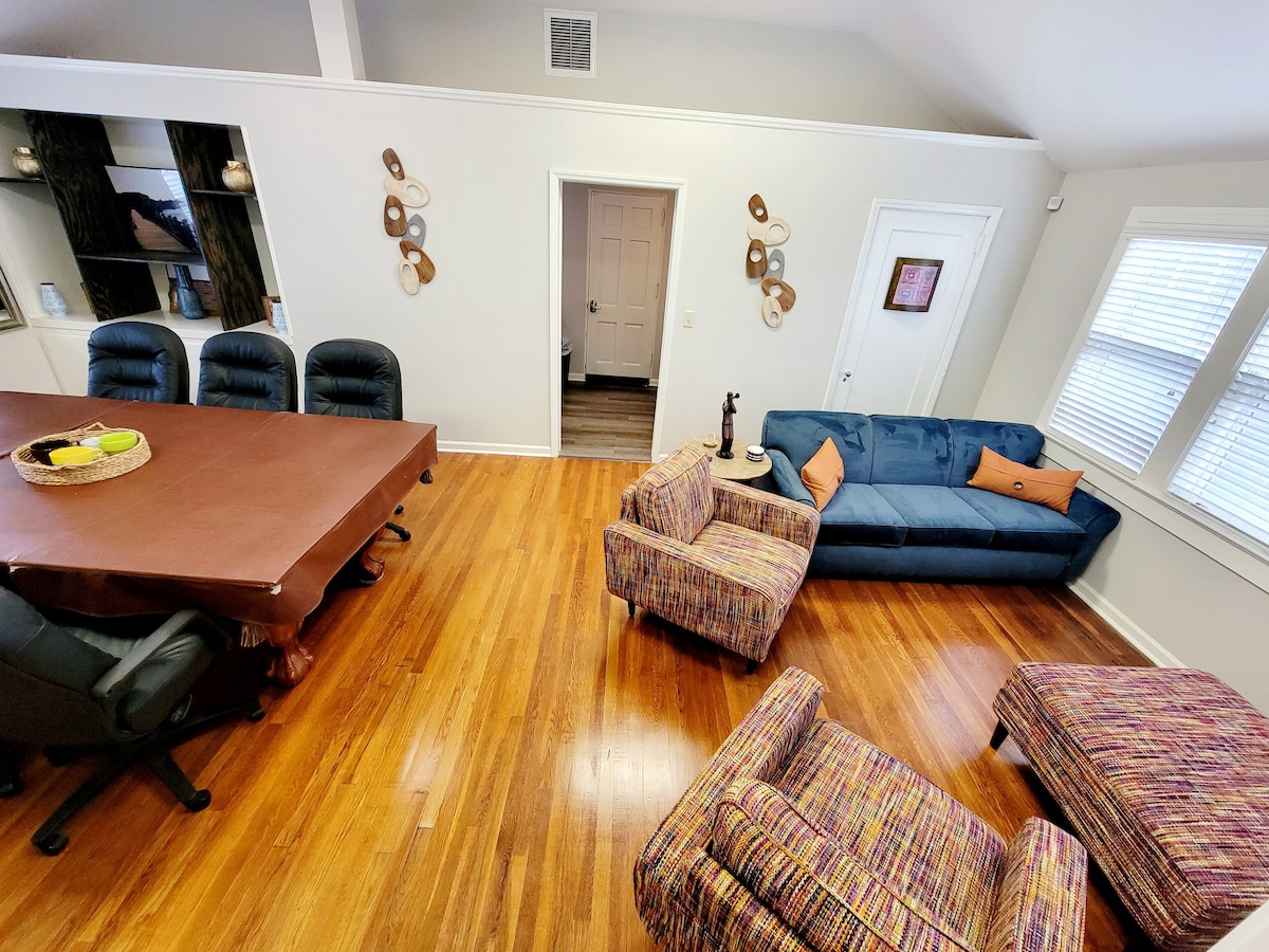 Loft-ul avocatului stabilește standardul pentru o ședere de lux în centrul orașului Goldsboro, cu decorul său de la mijlocul secolului și spațiile de cazare confortabile. Fiecare dormitor este mobilat cu un pat matrimonial și oferă baie proprie și dulap. Zona de living spațioasă cu concept deschis și bucătăria sunt locul perfect de întâlnire pentru grupul tău, iar un spațiu de birou oferă locul ideal pentru a lucra de acasă. Situat la câțiva pași de restaurante, magazine și baruri.