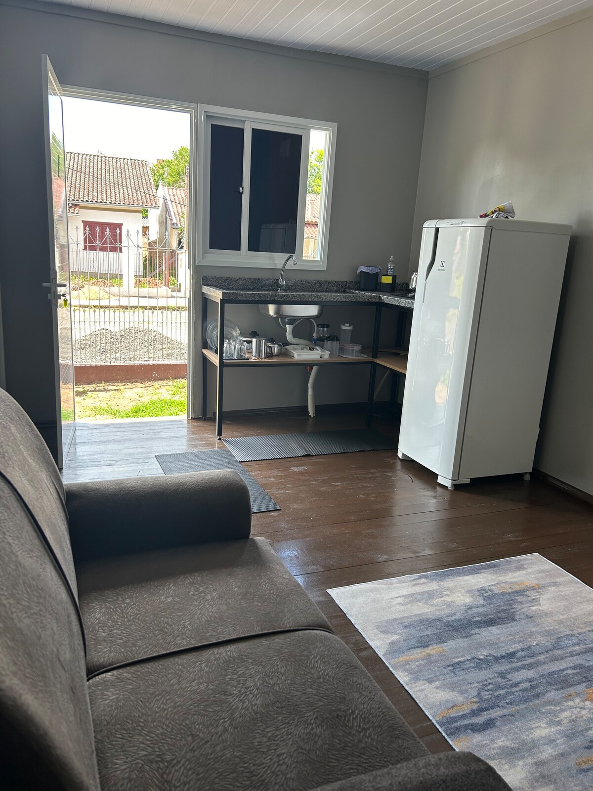 Lindo apartamento na região central de Montenegro. Perfeito para quem vem a trabalho ou lazer. Acomoda até 4 hóspedes com conforto. 1 quarto 1 banheiro Sala aconchegante Cozinha completa Lavanderia São 3 camas (1 de casal) + sofá-cama. Inclui roupas de cama e toalhas. Café da manhã fresquinho incluso. Wi-Fi, TV e ar-condicionado. Pátio fechado com monitoramento por câmeras. Bairro seguro, próximo a mercados, farmácias e academias. Será um prazer te receber.