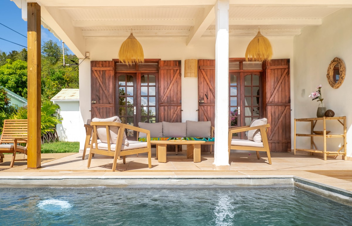 Vino și descoperă La Favorite situat pe insula autentică Marie Galante. Vilă, 2 dormitoare cu aer condiționat, baie proprie, hol de înot (15 m), cu vedere la Dominica. Confortabil. Aerisit. Aerisit.