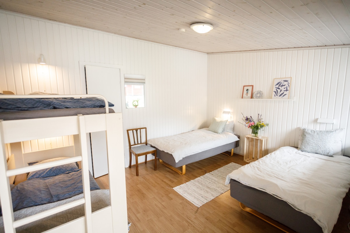 Camerele noastre simple și funcționale pentru 2 persoane oferă un pat supraetajat confortabil și o garderobă practică, astfel încât să te poți relaxa și depozita lucrurile în siguranță. Camerele sunt situate la etajul inferior liniștit al Nordly, cu acces direct la fermă – ideal după o zi pe trasee sau pe drumul de țară. Aceasta este alegerea evidentă pentru cei care se află într-o vacanță de drumeții sau ciclism care caută o ședere peste noapte prietenoasă, dar confortabilă, într-un cadru liniștit.