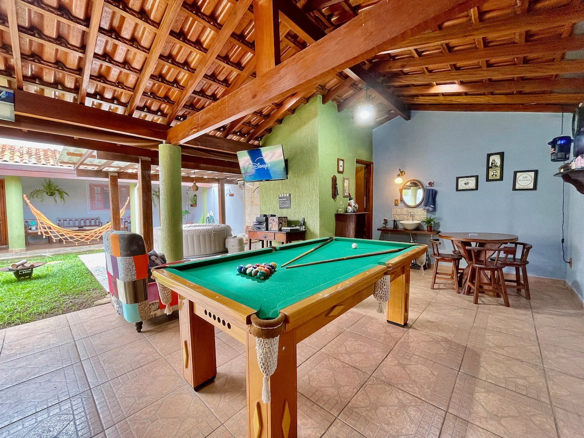 Casa se află într-o comunitate închisă din Thermas de São Pedro, la doar câteva minute de centrul orașului Águas de São Pedro, și oferă o piscină încălzită cu hidromasaj și cascadă. Are 3 dormitoare cu aer condiționat și ventilator de tavan, precum și o zonă de agrement completă cu grătar, aragaz cu lemne, masă de biliard, ping-pong, fotbal și Wi-Fi cu internet cu fibră optică. Acceptăm numai animale de companie mici și trebuie să ne informezi în momentul rezervării. Nu acceptăm pisici.