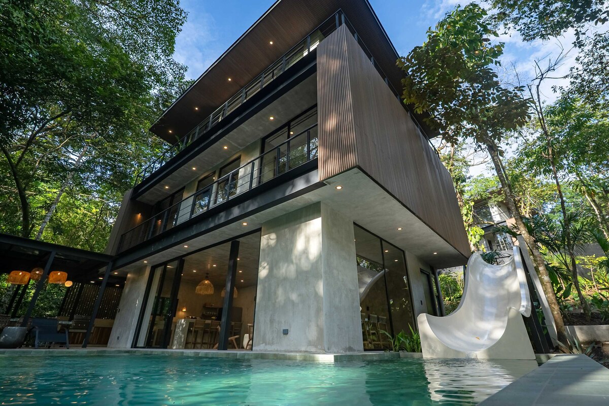Piscină infinită • Tobogan • Atmosferă tropicală 🌴 🌴🌿 Bine ai venit la aventura ta în casa din copac din Manuel Antonio! Ascuns în pădurea tropicală, acest refugiu unic în junglă se află la doar câteva minute de Parcul Național Manuel Antonio 🏝️ și de plajă. Confort de lux ecologic, intimitate totală și atmosfera pură din Costa Rica - natură, aventură și distracție, toate într-o ședere de neuitat ✨ 🌺Trezește-te cu maimuțe🐒, leneși🦥, tucani🦜 și papagali macaw, deoarece sunt vecini aici.