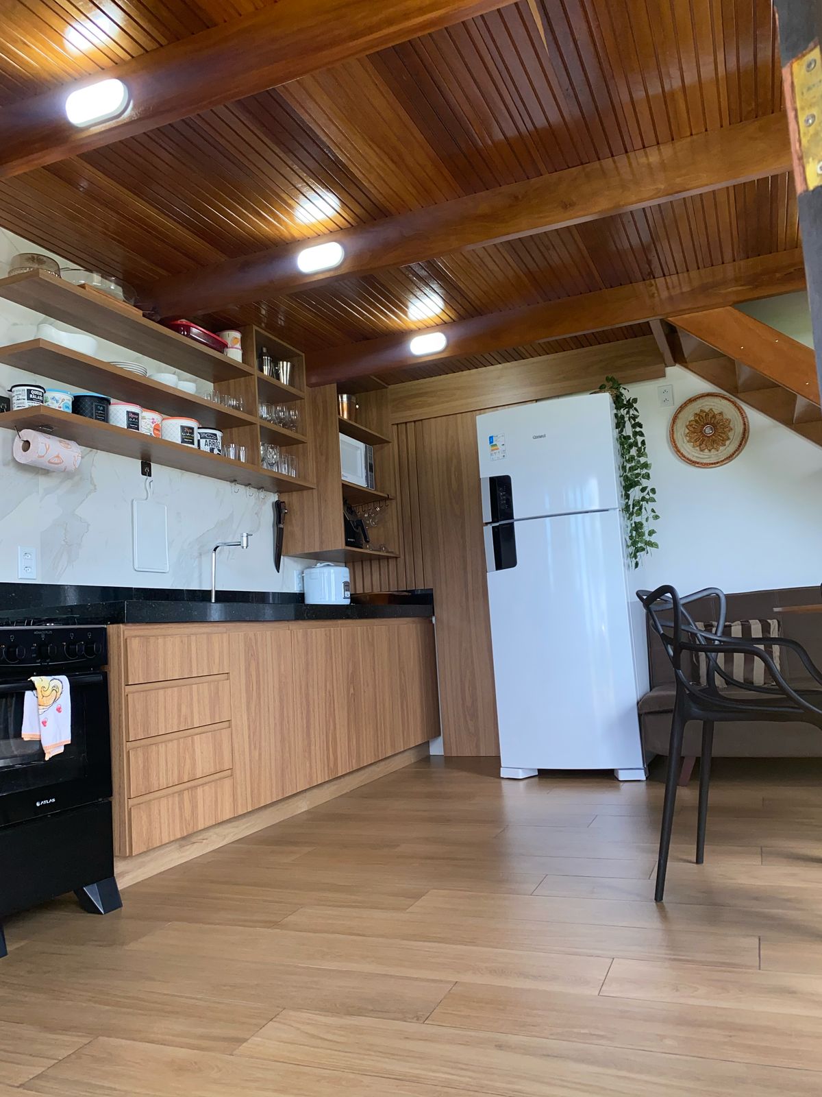 Casă frumoasă nou construită, complet echipată, pentru cei care caută confort și pace în mijlocul naturii. Apartament cu 3 dormitoare, cu băi proprii și toate dotate cu dulapuri și aer condiționat. Living cu canapea cu 3 locuri și fotolii și masă. Full TV HD 43"- 300 de canale. Bucătărie integrată cu blat: plită, cuptor electric, frigider și ustensile. Internet prin fibră optică: 200 Mbps. Toate așternuturile din bumbac 100%.