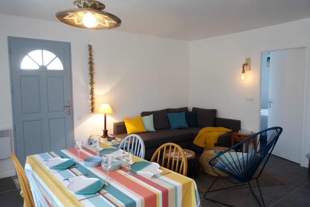 La maison est située à Hourtin Port, dans la résidence de tourisme du lac, au milieu d'un parc clos et arboré. Elle a été entièrement refaite à neuf pour vous proposer une prestation de qualité. De plein pied, la surface est de 40m2. Une grande baie vitrée donne directement sur la terrasse à l'ombre des chênes (mobilier de jardin et parasol). La résidence est clôturée, la piscine ouverte: 1er juin /30 septembre, aire de jeux pour enfants, boulodrome, salle de sport, BBQ, table de ping pong.