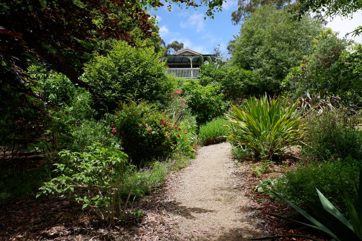 O căsuță de sine stătătoare situată printre pădurile tropicale din lanțurile Yarra. Pădurea ne înconjoară pe trei laturi, cu un vecin alături. Există o mulțime de piste pentru a merge pe jos. Ideal dacă îți place să privești păsările, să mergi pe jos sau să faci drumeții. Toată apa noastră provine din micile tributari ai râurilor Yarra, așa că este curată, netratată și proaspătă. Casa este foarte călduroasă iarna, cu un foc confortabil cu lemne și răcoros vara, umbrit de un fag mare.