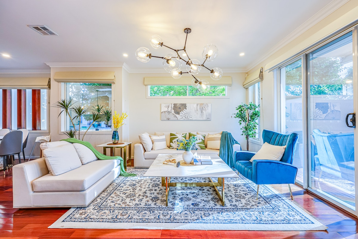 Casă de vacanță spațioasă și foarte bine întreținută, într-o locație liniștită, potrivită pentru familii, în centrul magazinelor, transport public, atracții pitorești - vine complet mobilat. Fiecare cameră are o încuietoare pentru a asigura intimitatea. Include: internet, panouri solare, încălzire prin conducte de gaz, răcire prin evaporare, terasă în aer liber și pergolă acoperită, port, șemineu în aer liber. Televizorul(Disney, Paramount+ și alte aplicații), lounge confortabil, bucătărie modernă cu electrocasnice și spălătorie. Consumabile pentru micul dejun continental oferite în ziua 1.