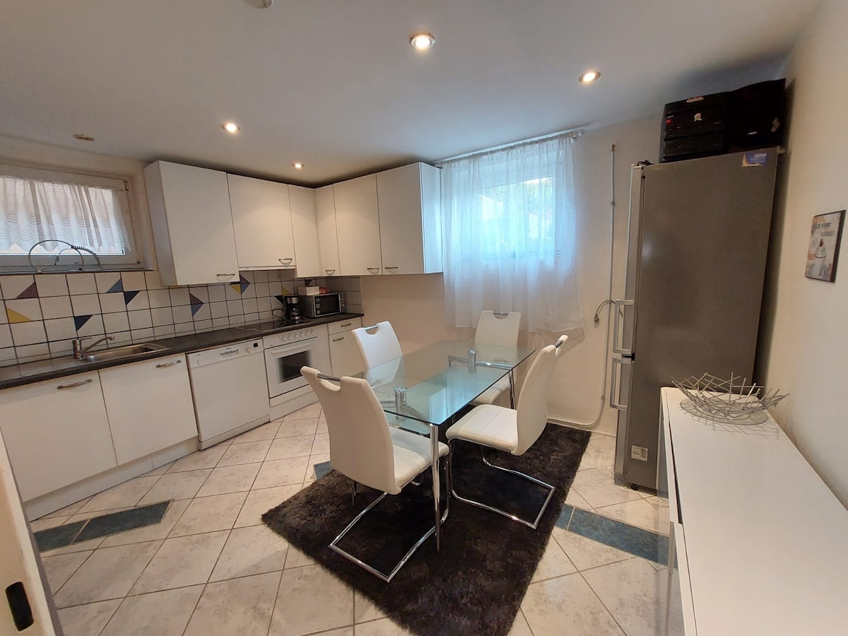 În casa noastră de familie există 4 camere cu un total de 7 paturi și 2 băi și toaletă la dispoziția ta. În plus, bucătăria poate folosi livingul și terasa. Casa se află în imediata vecinătate a orașului Klagenfurt. La centrul orașului se poate ajunge cu bicicleta în aproximativ 20 de minute, la Lacul Wörthersee. O stație de autobuz este în imediata vecinătate a casei.