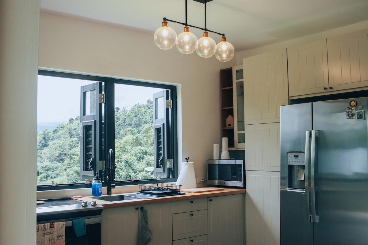 Cabană modernă scandalos de frumoasă, cocoțată deasupra frumosului oraș Cayey. Nou-nouț, cu finisaje de lux, piscină, terasă și zone de relaxare în aer liber. KeiCabin este un paradis cu vedere la oraș, foc în aer liber, acces direct la o râpă de apă, piscină cu heather, pat în aer liber și alte facilități. Avem o bucătărie frumoasă, utilată, cu blat de cuarț. Avem un scaun de hamac interior și pentru o cină romantică, o masă în aer liber sub copaci.