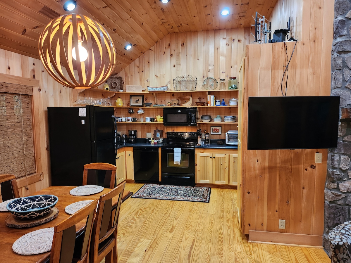 Old Soul Treehouse este o destinație fabuloasă pentru cuplurile care doresc să aibă o escapadă unică! Aceasta este o casă în copac pe malul apei pe Lacul Greenwood, cu un doc privat, căldură/aer condiționat, pat matrimonial și o bucătărie și o baie complet utilate. Înoată în lac în timpul zilei sau noaptea, bucură-te de o baie în cada cu hidromasaj de pe veranda liniștită de sub stele. Rezervă cu noi și în curând te vei bucura de lux lângă apă în timpul acestei experiențe intime cu cel pe care îl iubești. Ne-ar plăcea să stați la noi!