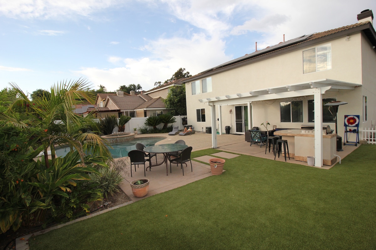 Vino să-ți vizitezi casa IMENSĂ, departe de casă (aproape 4000 de metri pătrați), în însoritul Escondido, California! Această locuință primitoare este perfectă pentru întreaga familie, de la frumosul său apus de soare/MUNTE și de la o PISCINĂ/cadă cu hidromasaj liniștită și pitorească. De asemenea, oferă o bucătărie cu grătar în aer liber, un lounge pentru adulți pentru a te relaxa sau a discuta, baschet la piscină, aruncarea inelului, o SALĂ DE JOCURI interactivă pentru toate vârstele și chiar un dulap confortabil pentru copii. Această locuință are cu adevărat ceva pentru toată lumea!