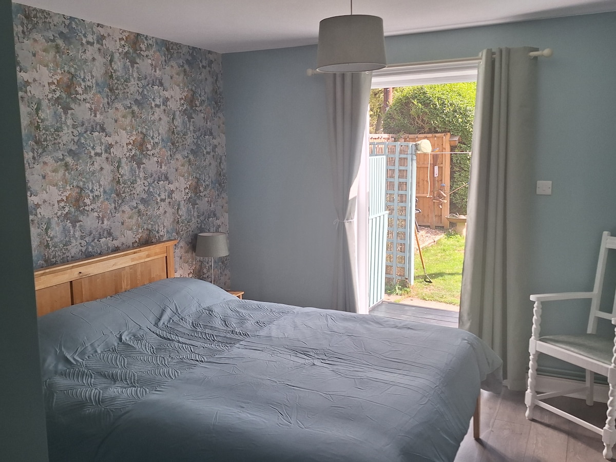 Un spațiu luminos, luminos, modern, într-un apartament închis în sine. Centrul orașului este la 2 mile distanță și pe un traseu cu autobuzul Parcarea în fața proprietății este gratuită și sigură Wi-Fi inclus pentru oaspeți Ceai TV /cafea și cereale disponibile Frigider congelator Mașină de spălat fier de călcat/masă de călcat aragaz și ustensile de gătit ceainic/plus tacâmuri și veselă prăjitor de pâine filtru de cafea micro val dormitor are montate dulapuri duble de dimensiuni complete cu uși cu oglindă completă acces la o zonă de grădină pentru a te bucura de seri