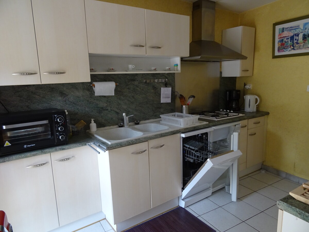 Suntem Amandine și Anthony și ne angajăm să îți facem șederea plăcută și de neuitat. Acest apartament T2, situat la parterul casei noastre, este complet nou și decorat cu gust, cu o terasă frumoasă umbrită și una complet echipată. Planificat pentru 3 persoane (canapea extensibilă) sau 4 (dacă este un bebeluș), Furnizate: lenjerie de baie, lenjerie de pat și produse esențiale: cafea, ceai, paste, orez etc.).