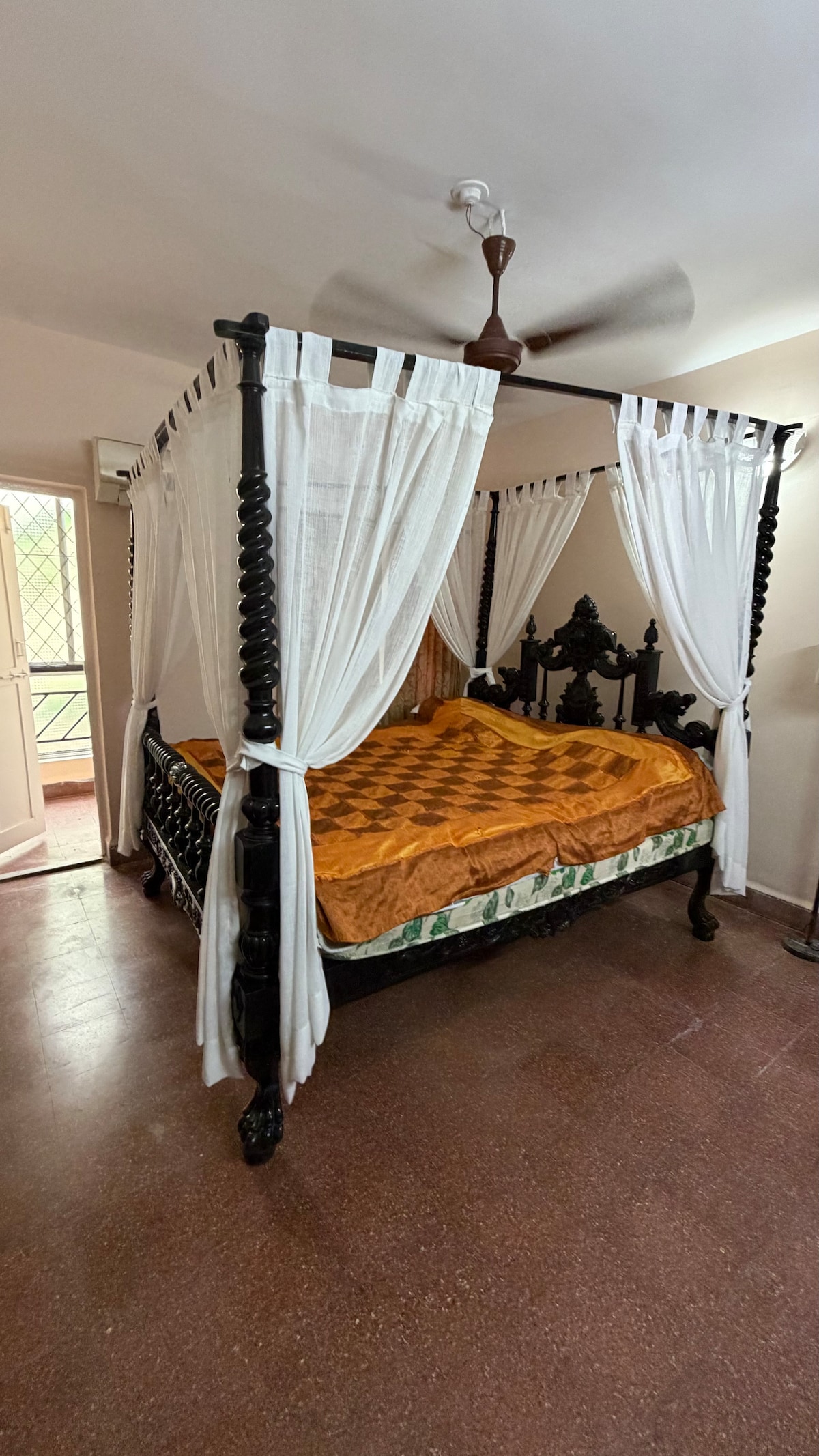 Poți să-mi trimiți un mesaj dând clic pe opțiunea „Contactează gazda” cu opțiunea „Bună”, astfel încât să știu că vizualizezi anunțul meu. Putem discuta de acolo. Amplasat în Benaulim, acesta este un apartament spațios 2 BHK. Fiecare dormitor are un pat confortabil cu aer condiționat. Poți găti în acest apartament. Există 2 băi cu apă curentă caldă sau rece. Plaja este la 2-5 minute de mers pe jos de aici