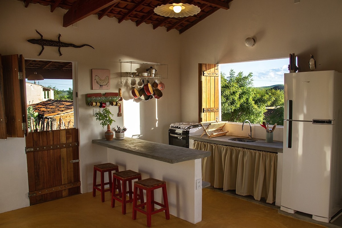 Pe Instagram @casa_xiquexique Casă mică fermecătoare pe strada Alto da Gameleira, în inima centrului istoric al orașului Piranhas, aproape de tot. Ești lângă baruri, restaurante, remorci, evenimente în oraș și încă mai ai privilegiul de a fi aproape de Velho Chico. Situată în partea superioară a Centrului Istoric, căsuța oferă o priveliște privilegiată asupra întregii părți istorice a orașului. Vino și experimentează Piranhas din interior. Casinha Xique-Xique te așteaptă.