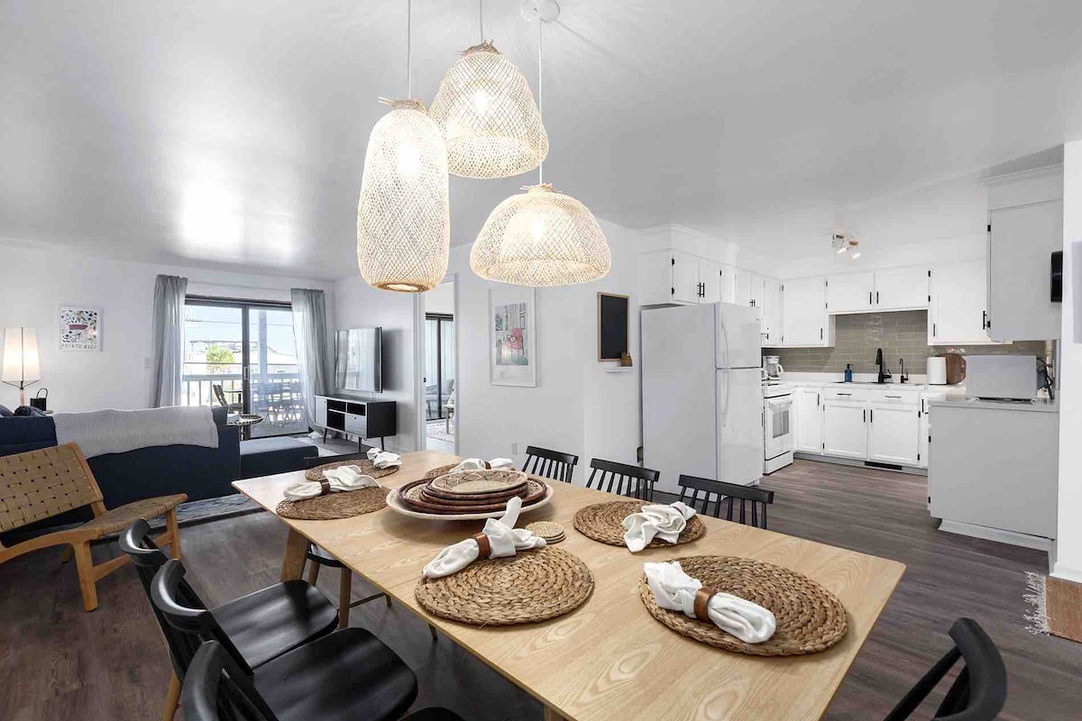 Our spacious 3 bedroom 2 bath newly renovated condo is perfect for your beach getaway with friends or family, located half a block from the nearest beach access. Each bedroom has a queen size bed (linens provided). Large comfy couch in the living room converts to a full size bed. Cook up a tasty meal with new appliances and cookware to enjoy indoors or out. Take in the ocean breeze on front and back decks with comfy chairs, couch, and outdoor dining table. No smoking or pets.