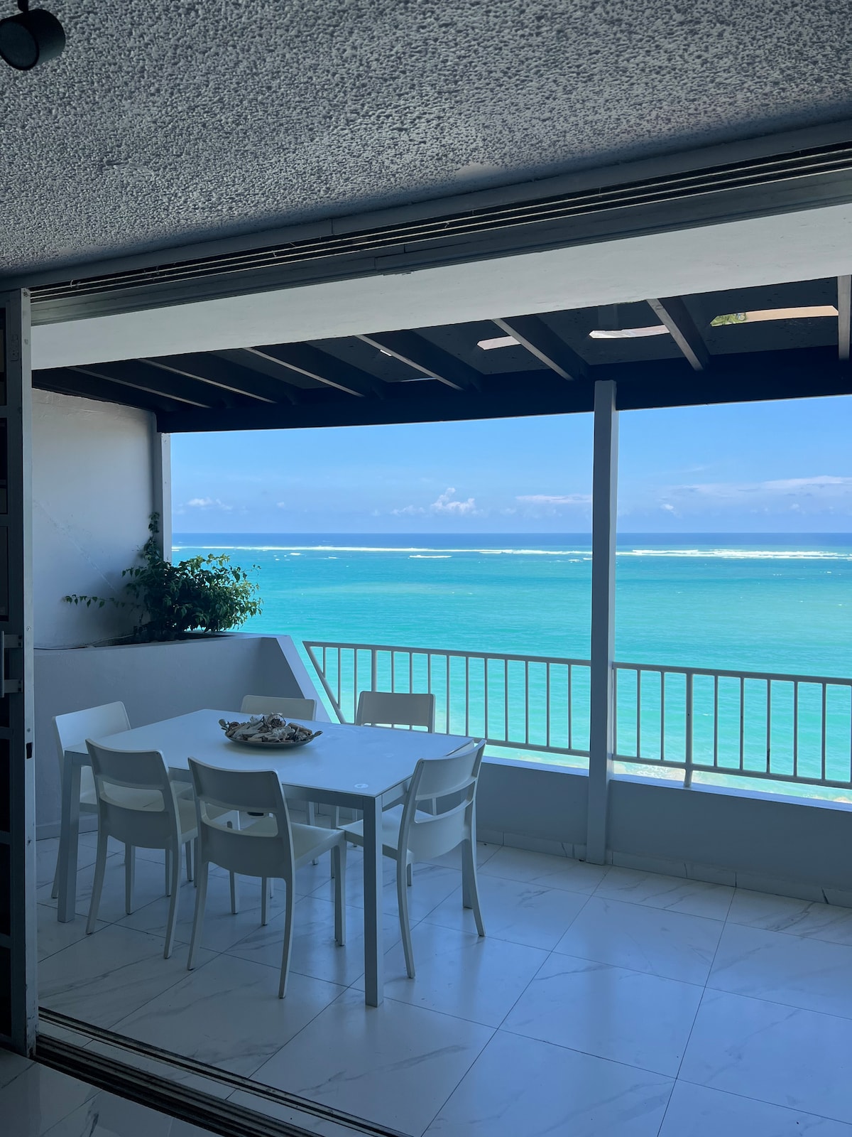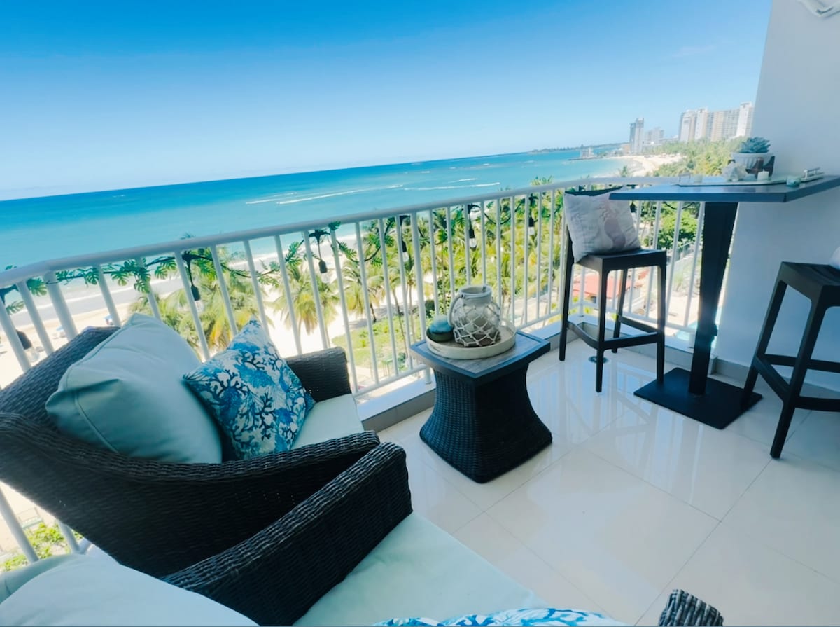 Front la ocean cu balcon. Toate pardoselile din gresie de ciment, bucătăria și baia actualizate, echipate pentru o vacanță frumoasă pe plajă sau șederi de scurtă sau lungă durată. Wi-Fi și 2 televizoare mari cu ecran plat. Vedere superbă a oceanului albastru și a cerului. Balcon privat. Pe plajă cu piscină, terenuri de sport, terase, zonă de grătar și picnic. La 5 minute de aeroportul San Juan ( SJU). Împărtășește aceeași plajă cu nisip alb neted cu faimosul hotel El Juan și Caino & Water Club și alte hoteluri de 5 stele.