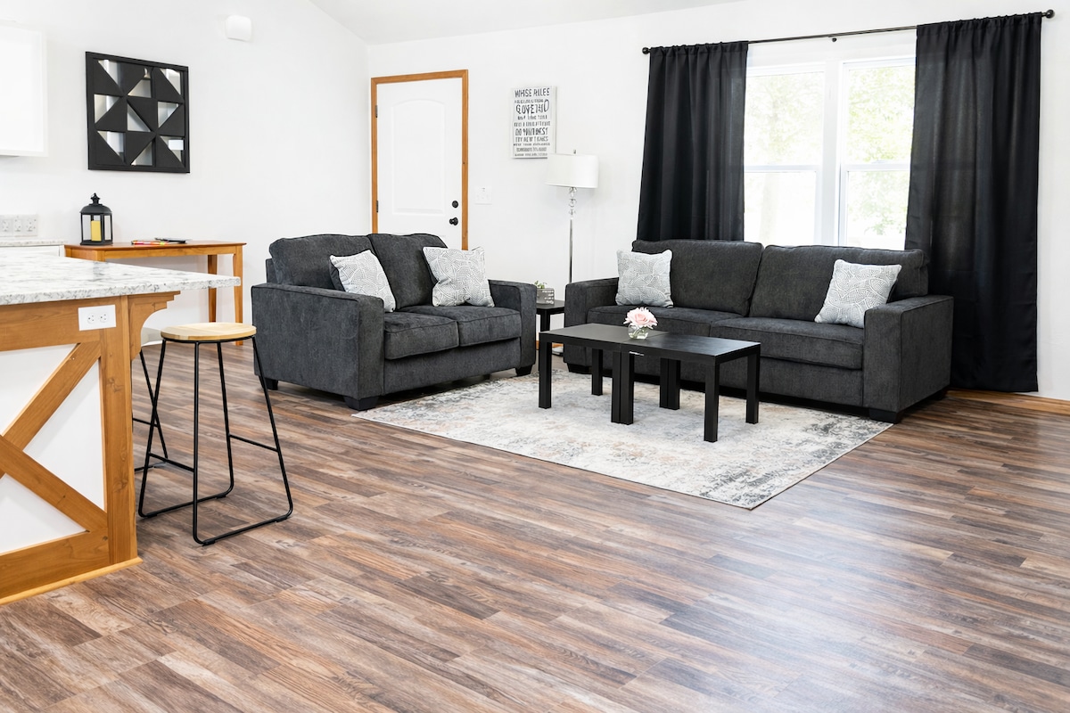 Adu-ți familia și prietenii să se răspândească în 4.500 de metri pătrați pe ambele părți ale acestui duplex. Fiecare parte are un garaj pentru o mașină, o bucătărie completă, un uscător automat de rufe și o curte separată (care se conectează cu o poartă). Experimentează aventurile din zonă, având în același timp o experiență de „oraș mic” într-un cartier liniștit, la nord de singurul semafor din oraș. La restaurante, magazine și un parc imens la câțiva pași. Internet extrem de rapid. 2 x 12 persoane adăposturi pentru tornade (1 în FIECARE garaj)!